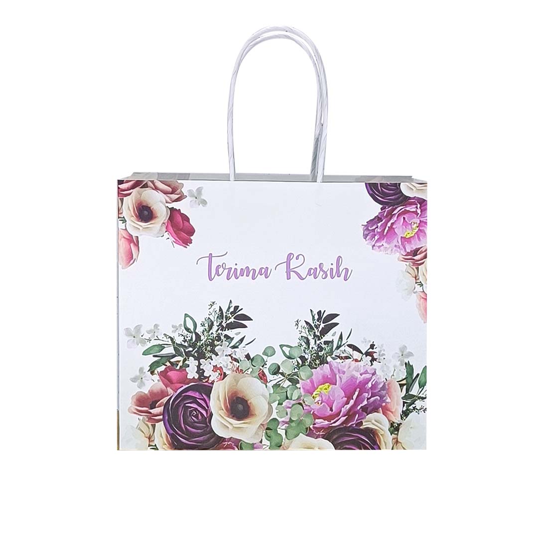 Floral Printed Thank You Paper Bag [M Size] WM001